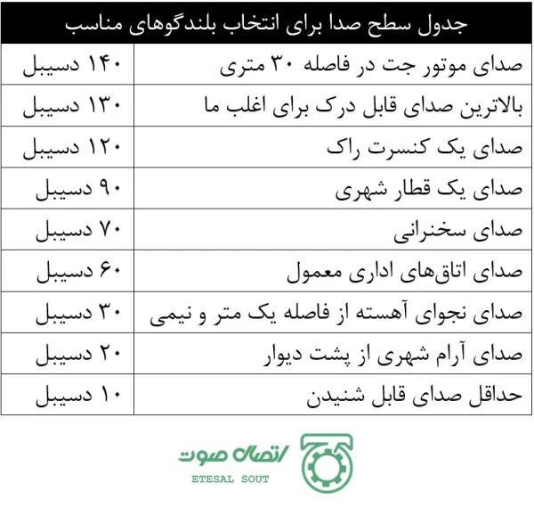 جدول سطح صدا برای انتخاب بلندگوهای مناسب