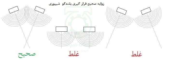 • زاویه نصب بلندگوها باید به گونه ای باشد که صدا به طور مستقیم به محلهای نشستن یا فعالیت برسد.